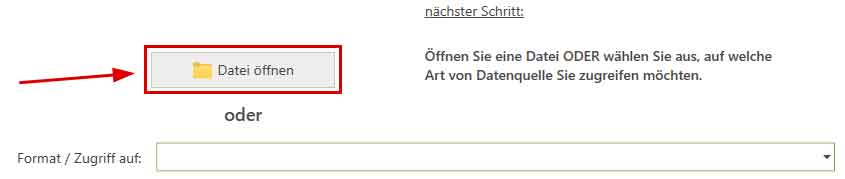 - Im nächsten Schritt öffnen wir zunächst mithilfe der Schaltfläche 'Datei öffnen' die Datei mit der zu verarbeitenden Adressliste.