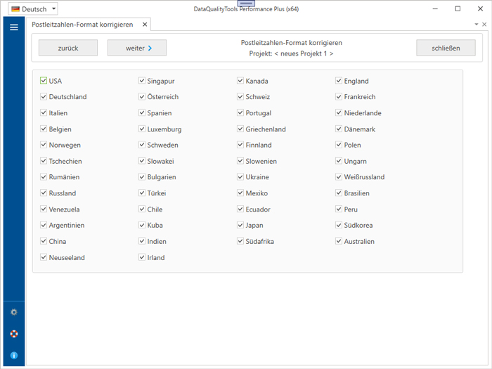 Mit Hilfe dieser Funktion kann das Format von Postleitzahlen durch das Ergänzen von fehlenden Leerzeichen, Bindestrichen oder führenden Nullen korrigiert werden.